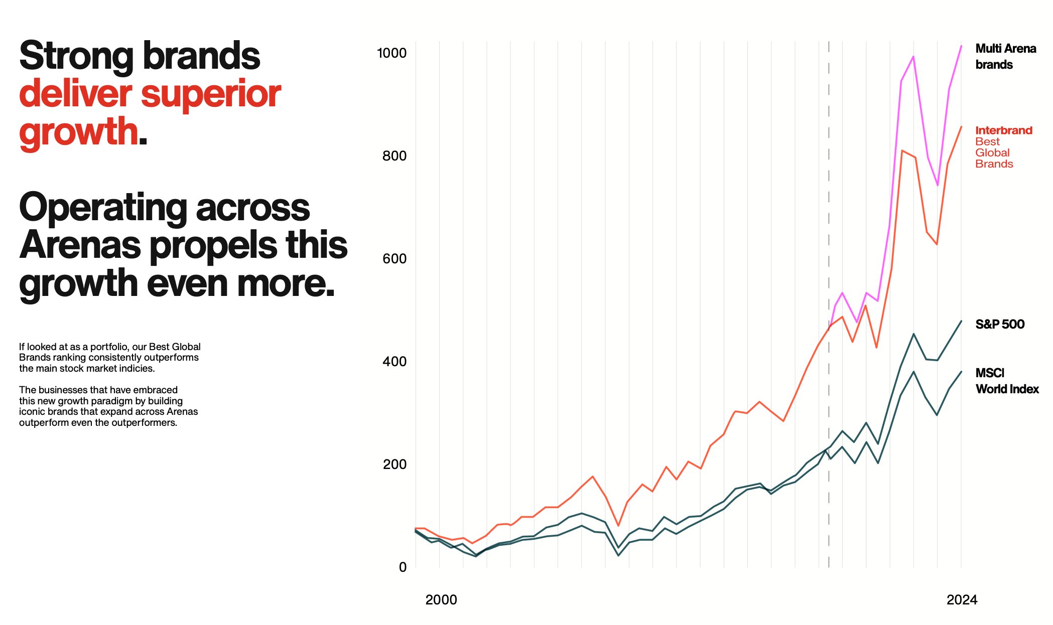 Interbrand Best Global Brands consistently outperforms the main stock market indices, and brands that expand across arenas outperform even the outperformers