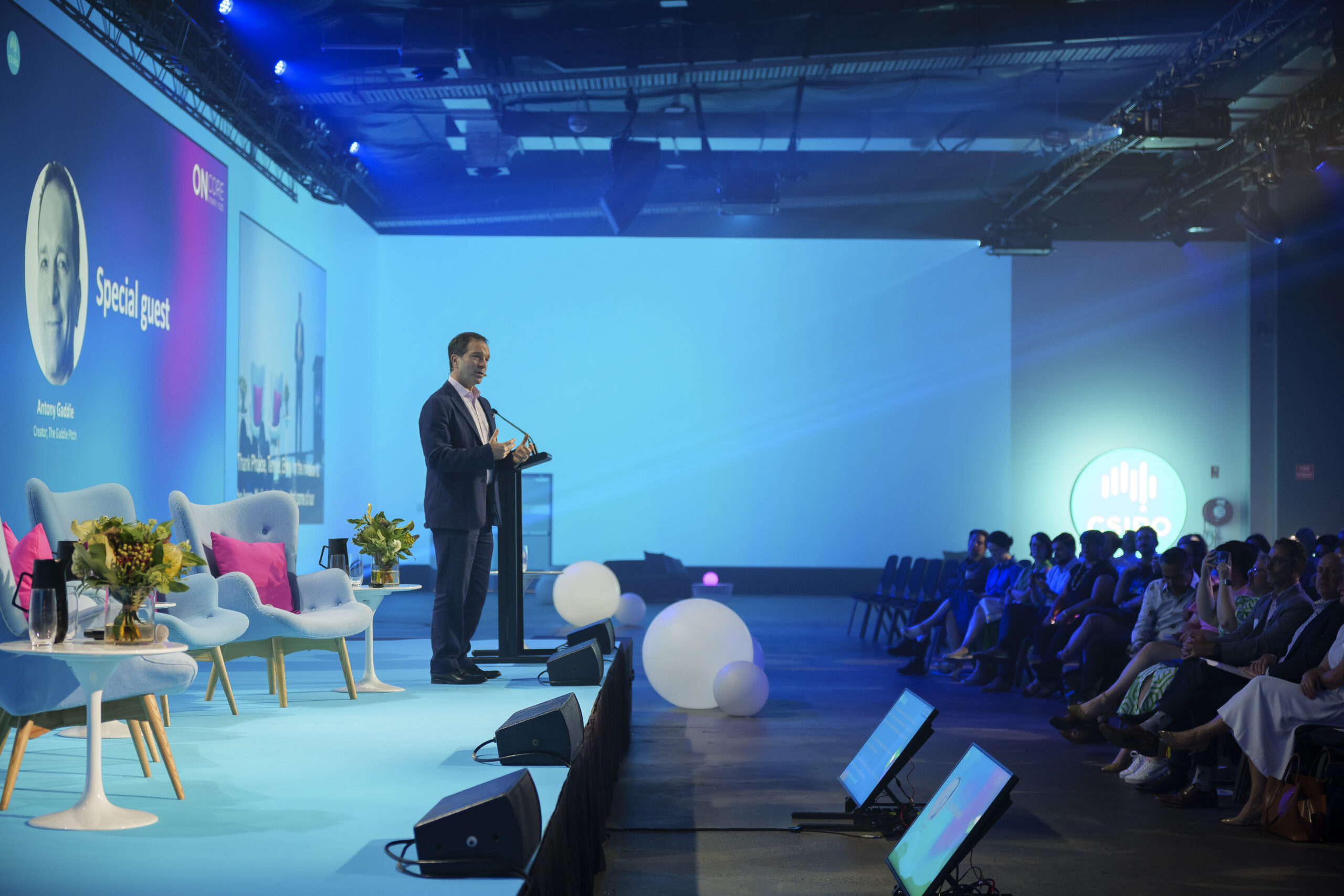 Guts were tasked with reimagining the ON program's visual identity with creative ideation, concepting and development, creating a typographic lockup. Our concept for the look and feel inspired by fluid thinking of our country's brightest. The ambient animation added intrigue and a dynamic energy to the event.